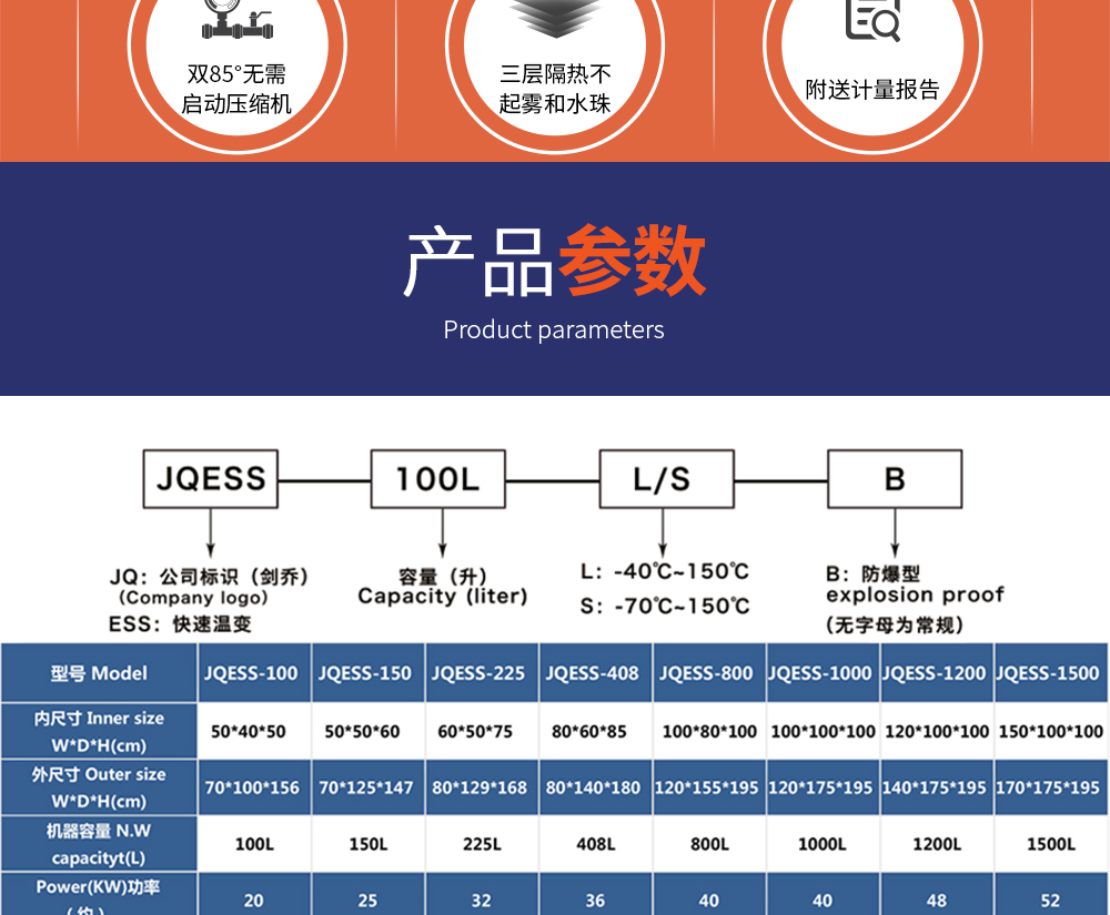 • 快速溫變試驗箱型號命名說明 及 參數表