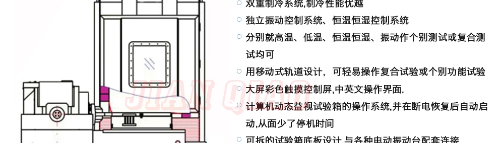 產品型號:JQTHV-1000 品牌:劍 喬 用途:三綜合試驗箱:主要是試驗箱和振動試驗系統的綜合,試驗時將溫度、濕度、振動(高溫或低溫),(正弦振動或隨機振動)以及電應力按規定的周期綜合在同一氣候試驗箱中施加到咨詢熱線:13829135130