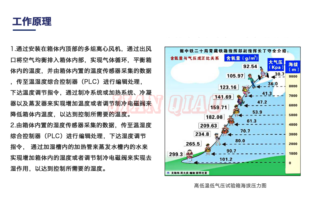 高低溫低氣壓試驗箱也稱為:低氣壓試驗機、低氣壓(高度)試驗箱、高低溫濕熱低氣壓試驗箱,適用于電工、電子產品及其他產品、零部件及材料進行低氣壓試驗的環境試驗箱設備,可滿足電工電子產品及軍用裝備等環境試驗 - 高溫試驗、低溫試驗、溫度變化試驗、低氣壓試驗、溫度高度試驗、低溫/低氣壓綜合試驗、高溫/低氣壓綜合試驗,適用于電工、電子、儀器儀表及其它產品零部件及材料在高低溫交變環境下貯存、運輸、使用時的適應性試驗。