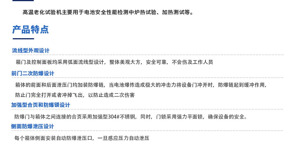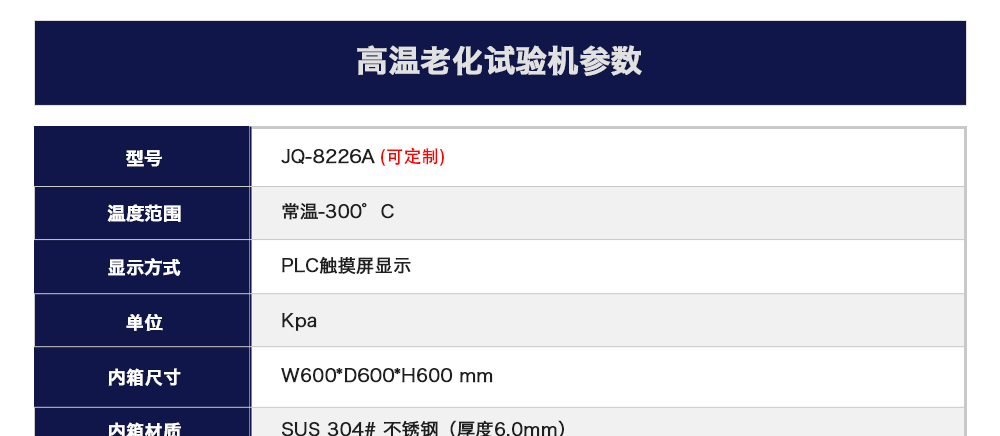 產(chǎn)品型號:JQ-8226A (可定制) 品牌:劍 喬 用途:高溫老化試驗機主要用于電池安全性能檢測中爐熱試驗、加熱測試等。咨詢熱線:13829135130
