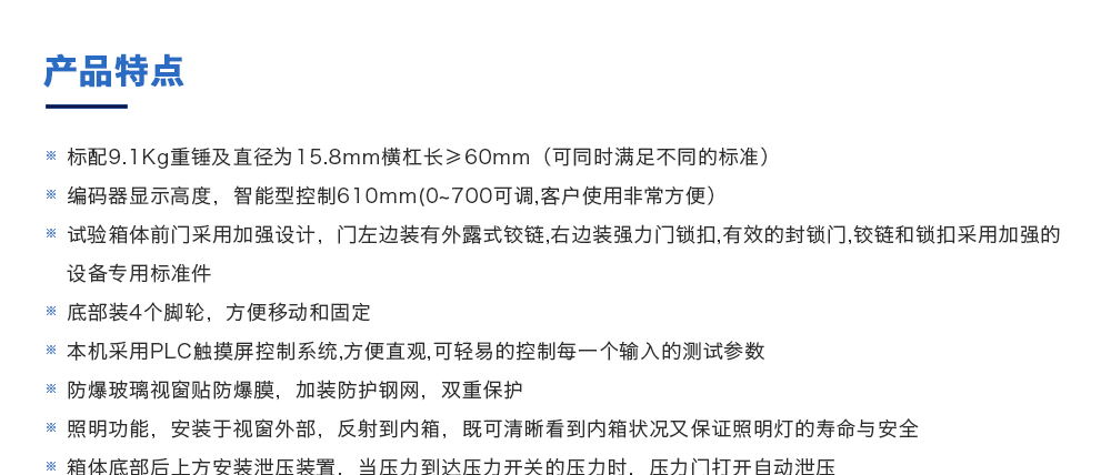 產(chǎn)品型號:JQ-8116(定制款) 品牌:劍 喬 用途:電池重物沖擊試驗機是模擬通過從不一同的高度的不同的重錘和不同的受力面積測試電池的安全性能,按規(guī)定進行試驗,電池應(yīng)不起火、不爆炸。也是各電池廠家及研究所必不可少的檢咨詢熱線:13829135130