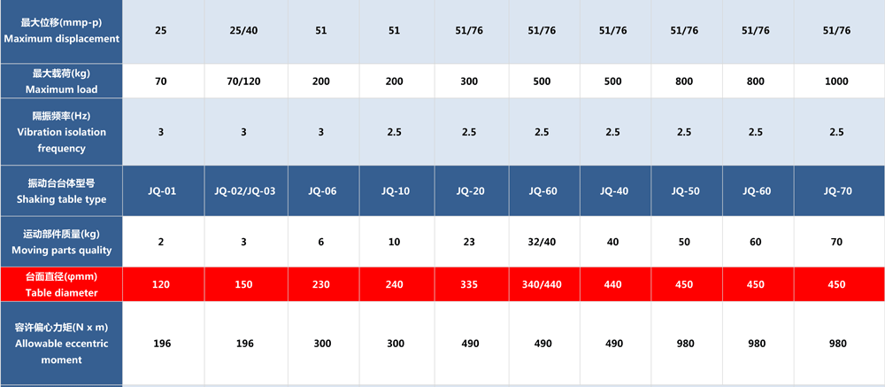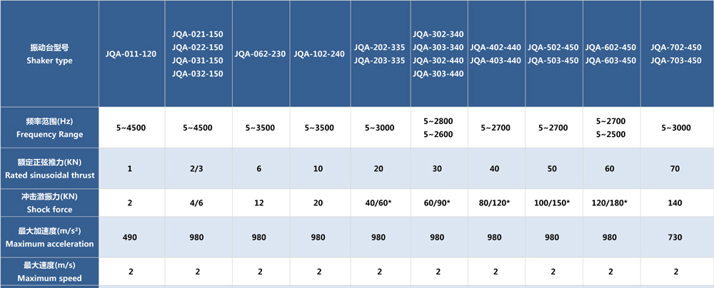 • JQA系列電動振動臺(風冷式)參數表