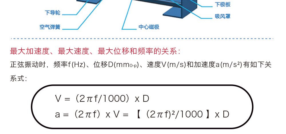 產品型號: 品牌:劍 喬 用途:正弦振動時,頻率f(Hz)、位移D(mm0-p)、速度V(m/s)和加速度a(m/s2)有如下關系式:咨詢熱線:13829135130